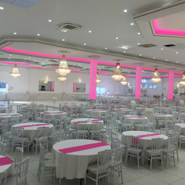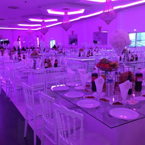 Cette salle unique en son genre éblouira vos convives, par son luxe, son confort et le somptueux décor dont elle dispose. Un jeu de lumières tamisées viendra compléter l’éclairage diffusé par de superbes lustres.